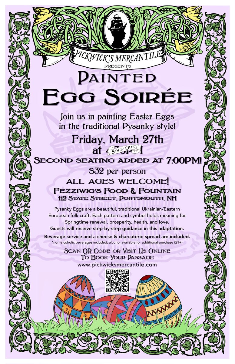 Pickwick’s and Fezziwig’s invite you to put on your Easter best and join us at Fezziwig's Food and Fountain in painting Easter Eggs in the traditional Pysanky style!